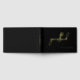A simple guestbook design with minimalist appeal and modern styling, this design with real gold foil lettering features the word "guestbook" in edgy contemporary handwritten type face on the front. The bride and groom's names and wedding date are included in a simple text template that you can personalise with your info. The template also incudes text on the spine of the guestbook that you can personalise as you like. The black background gives a look is chic sophistication with a congenial flair.