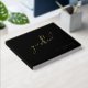 A simple guestbook design with minimalist appeal and modern styling, this design with real gold foil lettering features the word "guestbook" in edgy contemporary handwritten type face on the front. The bride and groom's names and wedding date are included in a simple text template that you can personalise with your info. The back of the book has a square photo template for including a favourite photo of the bride and groom. The template also incudes text on the spine of the guestbook that you can personalise as you like. The black background gives a look is chic sophistication with a congenial flair.
