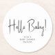 Simple Modern Neutral Baby Shower Hello Baby Round Paper Coaster