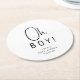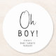 Simple Modern Neutral Baby Shower Oh Boy! Round Paper Coaster