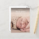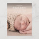 This simple, modern birth announcement postcard features a large photo and a white text overlay. Customise with your favourite photo, your baby's name and birth details, and your names. This design works best for baby photos with a darker background so that the white text can be read easily. On the back, you can add a personalised message.
