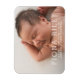 Announce your bundle of joy with style! A full-bleed photo background and simple yet classic typography are the features of this modern birth announcement magnet. Simply edit the template with your details (your baby's name, birth stats, and your name) and then choose different size options if desired. You can change the colours of the name and text.