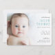 Welcome your new bundle of joy to the world with these sweet, simple and modern birth announcements in a beautiful baby blue colour. This announcement features your favourite photo with a white gradient and clean, modern typography. All text and colours on this invitation are customisable using the blue "Customise Me" button.