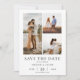 Simple modern wedding save the date with 3 photo collage and elegant typography.