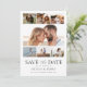 Create your own wedding save the date cards featuring your favourite photos. Add your names and details to an elegant minimalist typography design alongside a simple photo collage grid. Additional full page photo on reverse side.