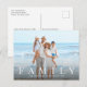 This design features a modern simple family photo picture, basic minimalist typography text font, stylish trendy basic clean lines, create add your own photo, budget postcard 1 one photo, vacation photography, make your own full photo, full bleed edge photo picture, family saying quote typography, a simplistic elegant elegance contemporary