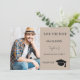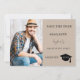 On front: Add your own vertical size photo of the graduate. A trendy mocha, beige colored background, black text. Templates for a name and date. The name is written with a modern hand lettered style script. With a cap, tassel topper.