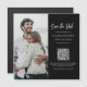 This simple, minimalist Save the Date magnet is perfect for introducing your guests to your big day. The design features a romantic couple and classic white font on a black background, with details you can personalise. It also includes a QR code that makes it easy for your guests to visit your website and learn more about your wedding. The small magnet allows for easy display at home before the wedding, ensuring everyone knows exactly when and where to gather for your special day.