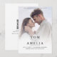 Make your wedding day announcement a stylish one with this modern and elegant Save the Date wedding invitation. This simple and minimalist design is perfect for introducing your guests to your big day. It features a romantic couple's photo and classic dark font that you can personalise with any custom text or greeting. On the back of the card, your guests can scan a QR code to visit your website and find more details about your special occasion. Simply replace the photo with your preferred image, edit the text, and update the QR code address to direct it to your own website. This pretty and simple design is an excellent way to showcase your unique sense of style and let your friends and family know that you're tying the knot.