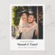 This stylish modern photo wedding save the date postcard features your names in a relaxed, casual handwriting script beneath your photo and your date and wedding locale.The default colour on the front is black, and on the back, it's a grey tone. On the front, you might choose to change the font or colour used for your names or other text. We've set the background as transparent on both sides to let the colour of the paper simply serve as the base tone. But you can change this and choose a background colour for one or both sides. You might choose to delete something or change a text field entirely with a different message. We've put some placeholder/sample text on the back for you to replace with your own return address and message/details. You can change the font, colour and size of the text when you edit for your own information. The default paper type is matte, by you can change it to semi-gloss if you prefer. Use zazzle's intuitive editing tools, your favourite photo and your inspiration to make this simple modern wedding save the date postcard uniquely yours!
