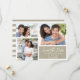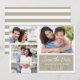 Cute three-photo neutral and white save the date cards. Perfect for a nautical or coastal wedding! Featuring three photos and a blue box with modern handwriting script and serif text with the wedding day details. Super cute and simple wedding save the dates. The background even has a cute horizontal cream and white stripes pattern. You can even change the background colour from blue to the colour of your choice by going into the "Customise it!" tool.