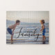 Simple Modern Photo Template Custom Family Name Jigsaw Puzzle features your favourite photo with your personalised family name. Makes a fantastic gift for Christmas, birthday, anniversary, Mother's Day, Father's Day, Grandparents Day and more. Personalise by editing the text in the text box provided. Designed by ©Evco Studio www.zazzle.com/store/evcostudio