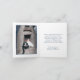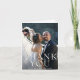 Modern and stylish wedding folded thank you card featuring a simple design with "Thank You" in large bold typography and your last name in a sans serif font, over your favourite full bleed vertical photo. The inside has another vertical picture along with your personal message in a navy blue serif font over a white background.