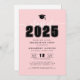 A sleek and modern graduation party invitation featuring "Class of 2025" in large white text at the top, set against a blush pink background for a soft and stylish look. A customisable graduation cap icon sits just above, tying into the theme. Below, the graduate’s name and event details are displayed in clean, modern fonts for an easy-to-read layout.