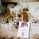 This sign stands upright on its own on the table making it easy for the wedding guests to find their seating. Table numbers enhance the look of your tablescape and put the finishing touch on your special day. Personalised text printing of the names or numbers of your tables. Add your custom wording to this design by using the "Edit this design template" boxes on the right hand side of the item, or click the blue "Customise it" button to arrange the text, change the fonts and colours and to also add additional information or images to this design.