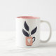 Simple modern clean style of design with a teacup and pot plant. Homely and cute. Fun simple life design. Green, pink and grey in pastel colours.