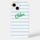 Simple Modern Retro Blue and Gree Thin Stripe Name Case-Mate iPhone Case