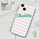 Introducing the modern iPhone 14 case designed with thin pink stripes and a fun retro-style name in green. This case not only adds a pop of personality to your device, but also provides reliable protection against scratches and drops. The slim design allows for easy access to all ports and buttons, while the raised edges provide extra screen and camera protection. Upgrade your phone's style and protection with this unique and playful case.