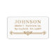 Simple modern gold on white return address labels featuring a classic serif font above a clean lined scroll for a chic, minimal feel.
