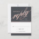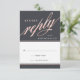 Simple, modern grey & rose gold script reply cards read "Kindly reply" with the reply-by date, and very simple RSVP wording in a white box below (so guests can easily write their names and acceptance in). Designed to match our modern rose gold script wedding invitations!