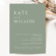Simple Modern Sage Green and White Wedding Invitation