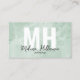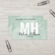 Modern Minimal Watercolor Sage Green Monogram Business Card. A fun and simple business card for brands, small businesses, or individuals like lash specialists, makeup artists, estheticians, hair stylists, corporate or office related businesses, and so much more! Right now it is a light green, black and white colouring, but you can actually switch out any of the colours to whatever you'd like to use! The white watercolor pattern will stay overlayed over the colour you choose for the background. A mix of modern and script typography for a professional but chic look.