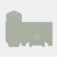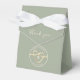 Simple, elegant, minimal, modern sage green wedding thank you favour box with monogram and gold rope heart.