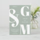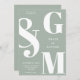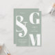 Simple Modern Sage Green Wedding Invitation. Features bold monogram typography and minimal graphic design. Personalise text with all the details of your special day.