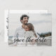 The front of the postcard showcases a spot for a beloved photo—perhaps a favourite from your engagement session—framed by the clean, sophisticated lines of a modern script font. Personalise it with your names and the phrase "Save the Date" to set the tone for your wedding celebrations.