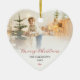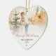 Simple Modern Script Merry Christmas Photo Ceramic Ornament