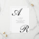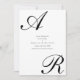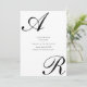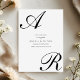 This elegant Save the Date card features a bold and refined script monogram design. A large, flowing initial appears at the top, paired with a matching script letter at the bottom, creating a balanced and sophisticated layout. The typography is clean and modern, set in classic black on a crisp white background. The minimal color palette gives the design a timeless and high-end look.