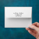 Add your own name and address to this simple, minimalist envelope. The lower case name in a modern script font adds a unique touch, and contrasts with the clean sans serif address.