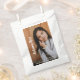 Modern graduation favour bag with the graduate's name in bold white script vertically along the left side with the class year and school name at the bottom, over your favourite photo. These favour bags are perfect for a girl high school graduate and are a great way to add a personal touch to your party favours.