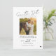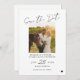 Trendy minimalist simple black and white modern handwriting calligraphy script wedding save the date card with custom engagement photo. +++++++++++ Suitable for casual informal summer beach coastal destination weddings. ++++++++++ Easy to personalise with your pictures, details, and website on both sides.