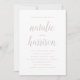 Introducing our sleek and stylish Simple Modern Script wedding invitation, where simplicity meets sophistication to set the tone for your special day. Featuring the couple's names elegantly displayed in an elegant taupe script against a crisp white background, this invitation exudes contemporary charm. The wedding details are presented in clean and minimalist taupe lettering, ensuring clarity and sophistication. Perfect for casual weddings in any season, this invitation offers timeless elegance with a modern twist. Make a statement and invite your guests to celebrate your love with our Simple Modern Script wedding invitation.