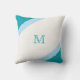 Simple Modern Teal Blue Striped Monogram Cushion