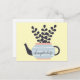 Simple modern teapot with plant pastel postcard