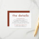 Simple Modern Terracotta Rust Wedding Details Enclosure Card