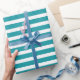 Simple Modern Turquoise and White Striped Minimalist Wrapping Paper