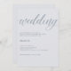 These stylish wedding invitations feature a soft, light blue background. The word "wedding" appears at the top in modern, dusty blue calligraphy. All of your wedding information appears in simple modern text. An elegant, stylish look for your wedding!