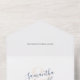Introducing our latest creation, the Modern Tri-Fold Invitation - a masterpiece of contemporary elegance. This innovative design features details beautifully inscribed in a chic, hand-lettered script typography in a sophisticated navy blue, harmoniously balanced with a classic serif font. Each flap of this tri-fold marvel is customisable, allowing you to infuse your wedding details and return address with a personal touch. Ideal for both the sun-kissed ambiance of a tropical beach wedding and the refined sophistication of a luxurious, elegant celebration. Explore a world of exquisite designs by Victoria Grigaliunas at www.zazzle.com/dotellabelle, where modern meets elegance.
