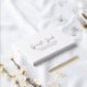 Elegant foil wedding guest book featuring a simple design with a modern sans serif font and an elegant script font.
