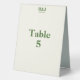 Create table number cards featuring your desired monograms and special date. Very light shade of yellow with green font. Simple, modern appeal. Perfect with the wedding supplies from the Romantic Tree Design collection. Add your couple monogram, date of the wedding, and table number. Use the template to create your own table number table tent sign.