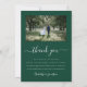 Simple Modern Wedding photo Thank You Card white modern typography script on a rich dark green background