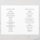 Elegant folded wedding program featuring a simple design with a modern sans serif font and an elegant script font.