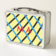 This is a standard metal lunchbox that appears to work just fine. We designed this box ourselves with an uploaded photo and custom text on the front and back. It looks absolutely beautiful except the front of the lunchbox is not centered like it shows in the photo. The print borders don't align with the inset flat part of the box where the preview photo online showed it perfectly centered in there. The back looks nice and centered though.