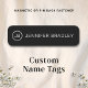 This custom design features a simple monogram in a circle on the left with a personalised name next to it in white text on a black background. Personalised by editing the text in the text boxes #nametags #company #business #officesupplies #personalised #smallbusiness #custom #bosslady #girlboss #ladyboss #bossbabe #marketing #promotion #design #designer