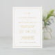 Simple Engagement Party Invitation featuring a modern yet elegant design with your two letter monogram at the top and your details surrounded by a thin border. All design elements are in real gold foil. A chic and stylish design that is great for a minimalist couple.
