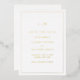 Simple save the date card featuring a modern yet elegant design with your two letter monogram at the top and your wedding details surrounded by a thin border. All design elements on the front are in real gold foil. A chic and stylish design that is great for a minimalist couple.