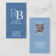 Simple Monogram QR Code Blue | Connect with Me Business Card